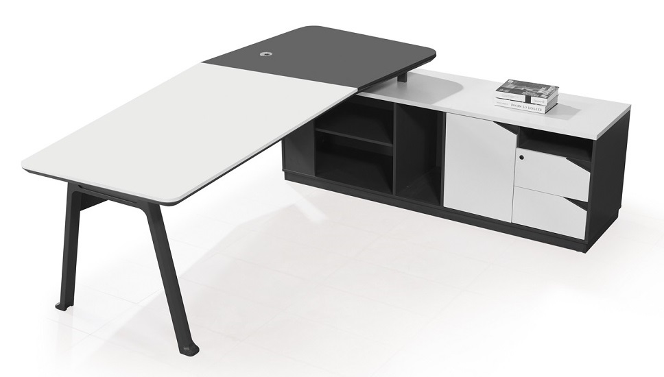Büromöbel Chef Schreibtisch Büroschreibtisch CAROLINA weiß-anthrazit 2,2x1,80x0,75m